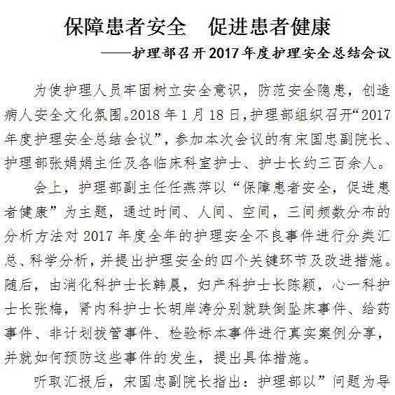 保障患者安全 促进患者健康 ——护理部召开2017年度护理安全总结会议