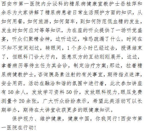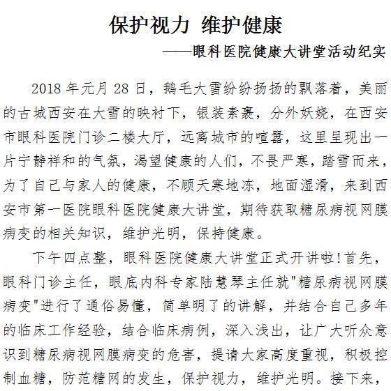 保护视力 维护健康 ——眼科医院健康大讲堂活动纪实