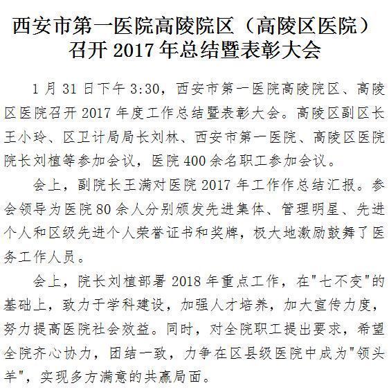 男同视频 高陵院区(高陵区医院)召开2017年总结暨表彰大会