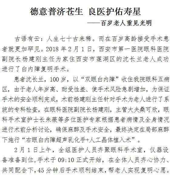 德意普济苍生 良医护佑寿星 ——百岁老人重见光明