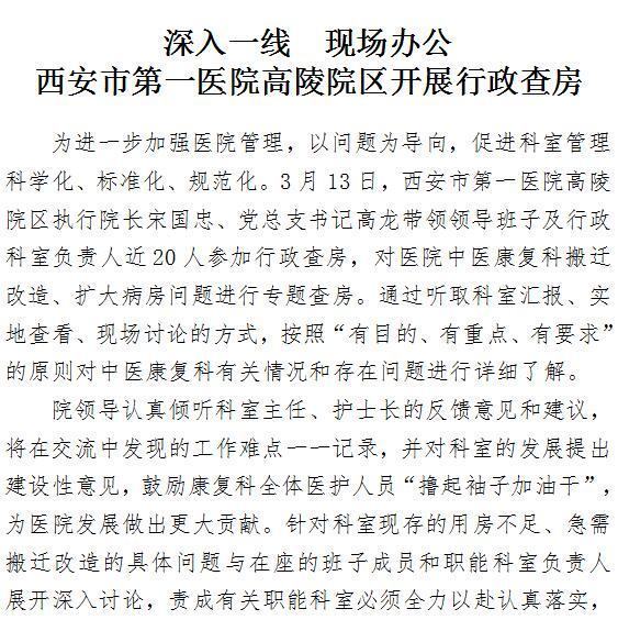 深入一线 现场办公——男同视频 高陵院区开展行政查房