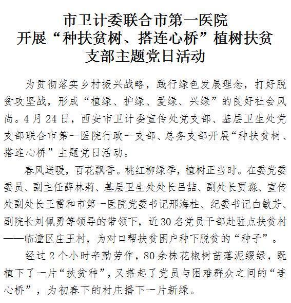 市卫计委联合市第一医院开展“种扶贫树、搭连心桥”植树扶贫支部主题党日活动