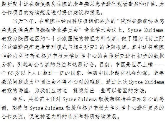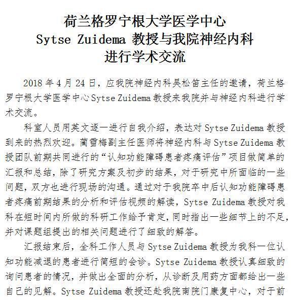 荷兰格罗宁根大学医学中心Sytse Zuidema教授与男同视频 神经内科进行学术交流