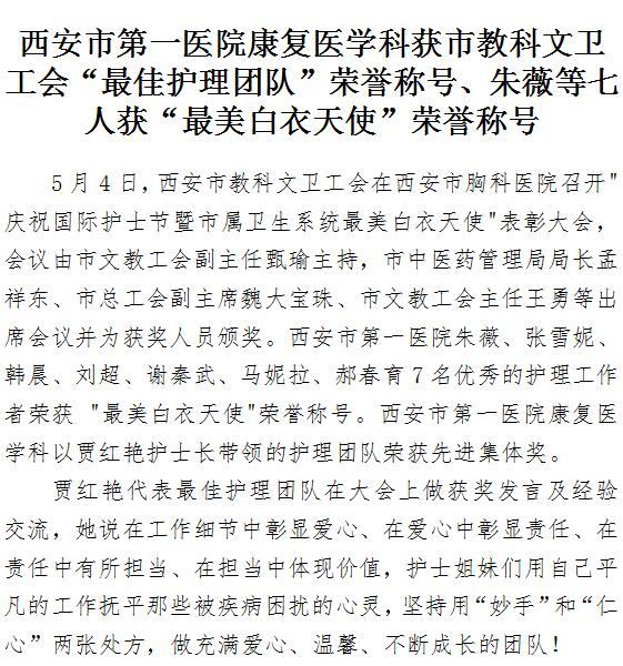 男同视频 康复医学科获市教科文卫工会“最佳护理团队”荣誉称号