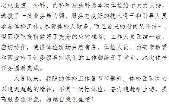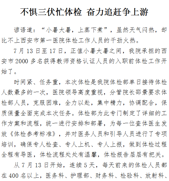 不惧三伏忙体检 奋力追赶争上游
