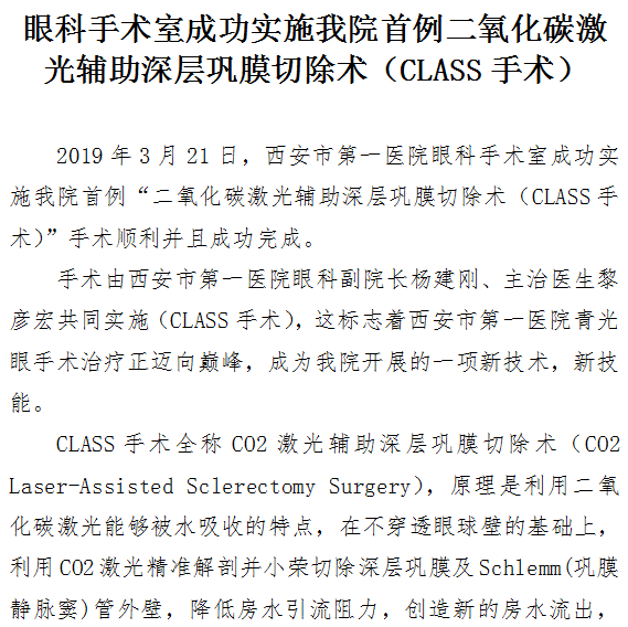 眼科手术室成功实施男同视频 首例二氧化碳激光辅助深层巩膜切除术(CLASS手术)