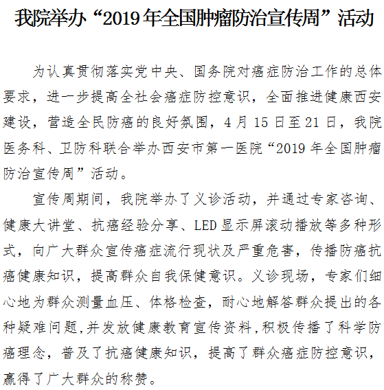 男同视频 举办“2019年全国肿瘤防治宣传周”活动