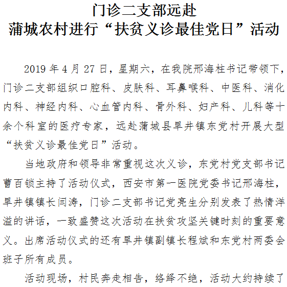 门诊二支部远赴蒲城农村进行“扶贫义诊最佳党日”活动