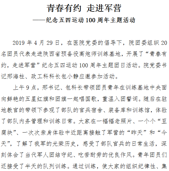 青春有约 走进军营——纪念五四运动100周年主题活动