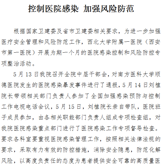 控制医院感染 加强风险防范
