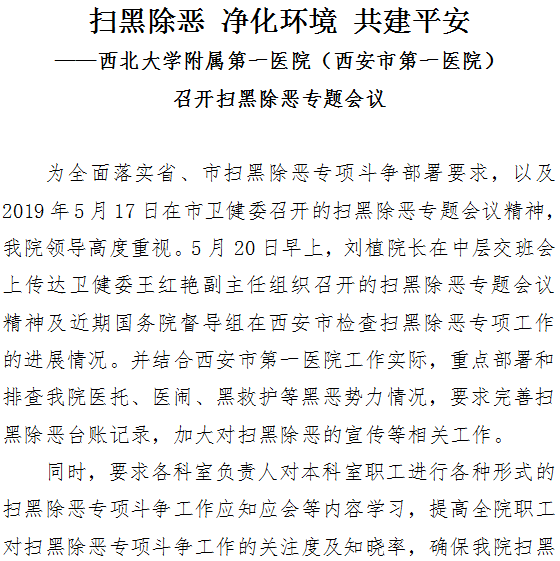 扫黑除恶 净化环境 共建平安——市一院召开扫黑除恶专题会议