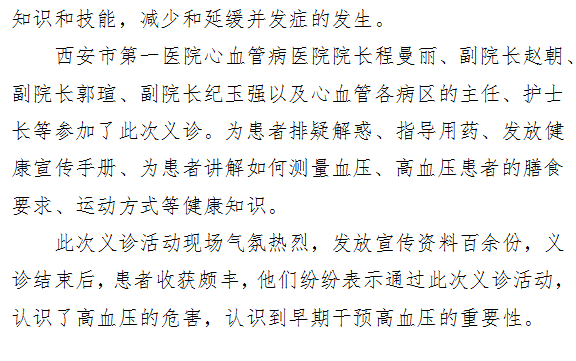 西北大学附属第一医院(男同视频 心血管病医院)举办高血压日义诊活动