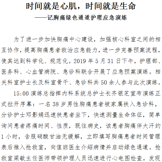 时间就是心肌,时间就是生命——记胸痛绿色通道护理应急演练