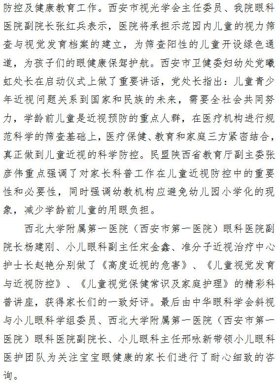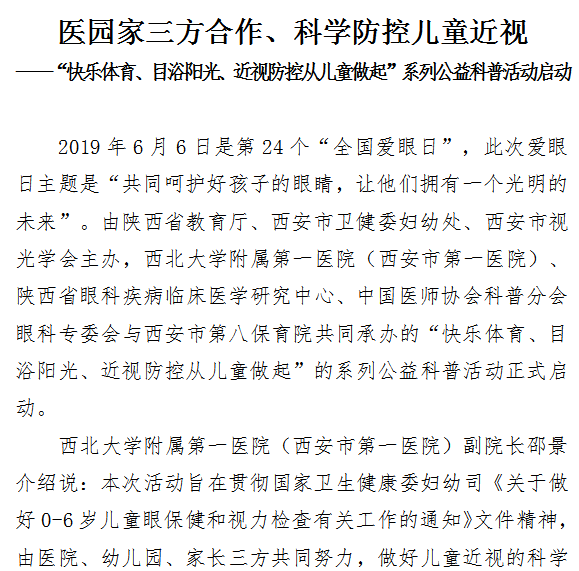 “快乐体育、目浴阳光、近视防控从儿童做起”系列公益科普活动启动