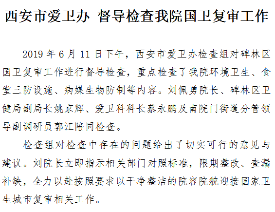 西安市爱卫办 督导检查男同视频 国卫复审工作