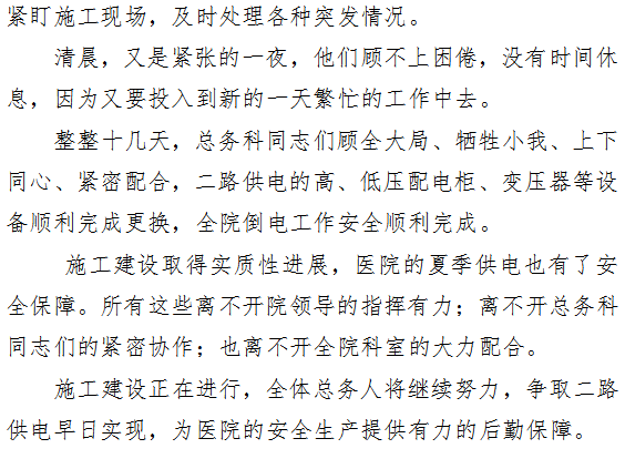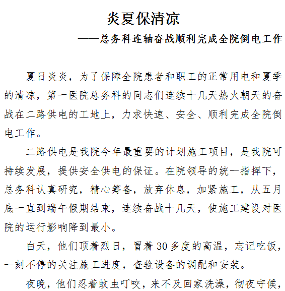炎夏保清凉 ——总务科连轴奋战顺利完成全院倒电工作