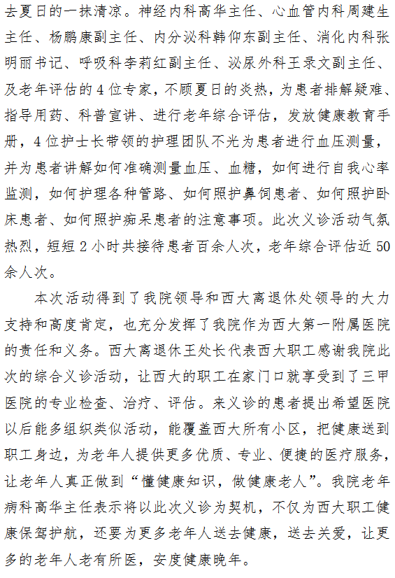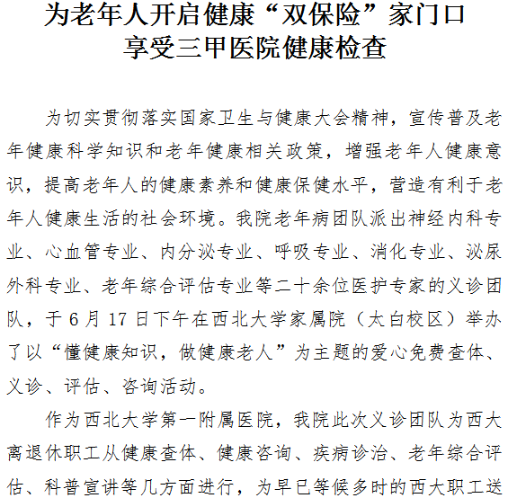 为老年人开启健康“双保险”家门口享受三甲医院健康检查