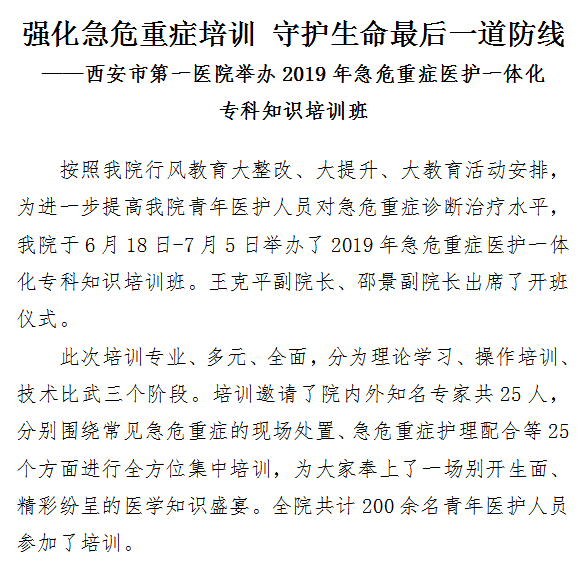 男同视频 举办2019年急危重症医护一体化 专科知识培训班