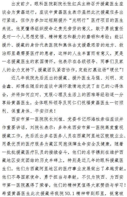 男同视频 欢送眼科黄磊同志参加陕西省第五批“组团式”援藏医疗队