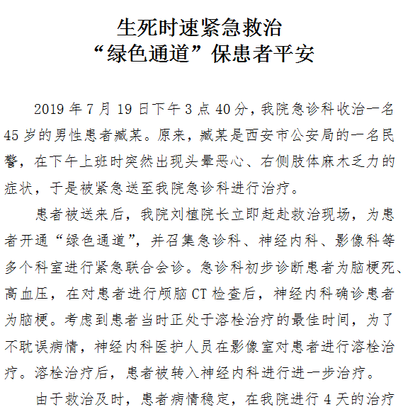 生死时速紧急救治 “绿色通道”保患者平安