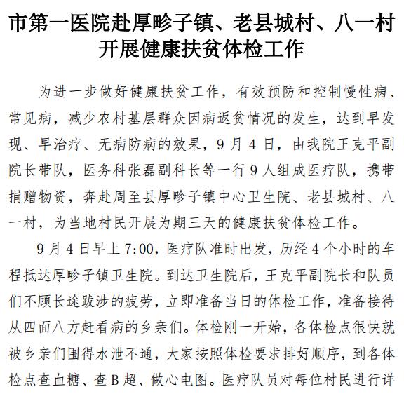 市第一医院赴厚畛子镇、老县城村、八一村 开展健康扶贫体检工作