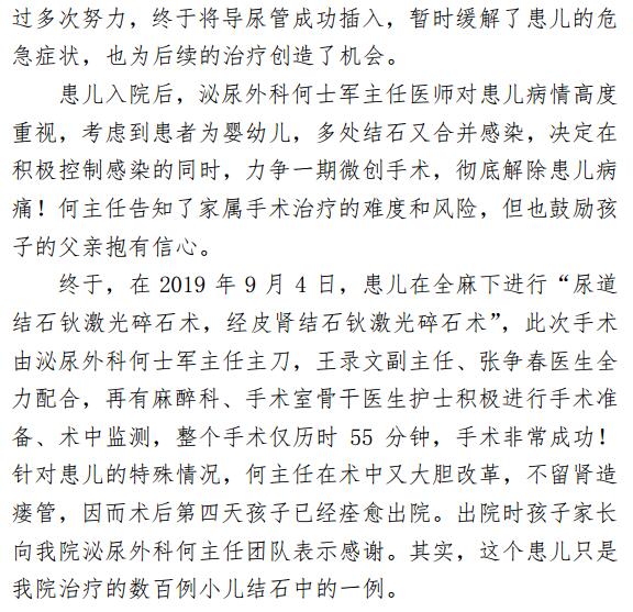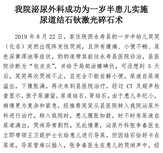 男同视频 泌尿外科成功为一岁半患儿实施 尿道结石钬激光碎石术