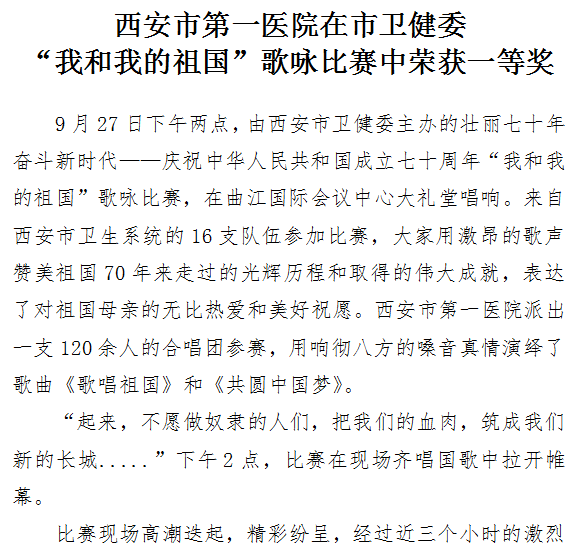 男同视频 在市卫健委 “我和我的祖国”歌咏比赛中荣获一等奖