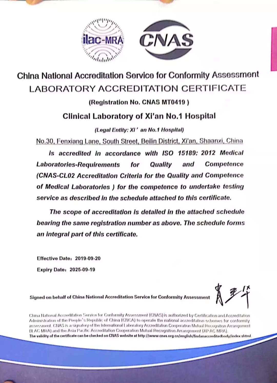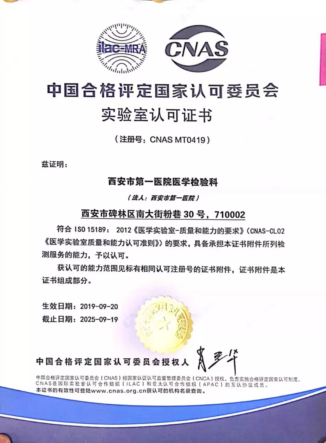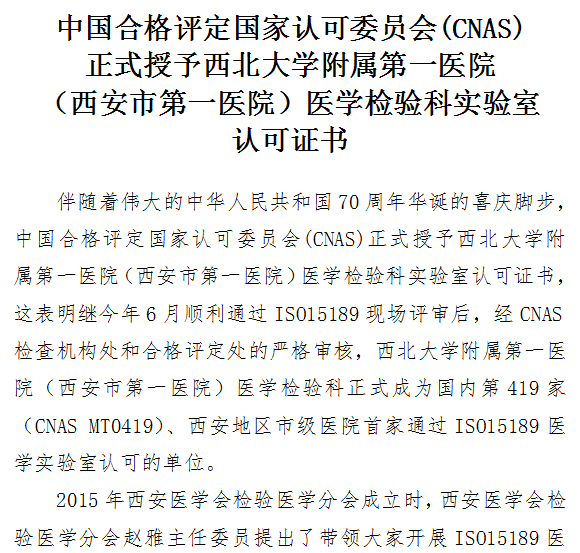 中国合格评定国家认可委员会(CNAS) 正式授予男同视频 医学检验科实验室 认可证书