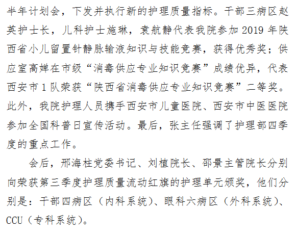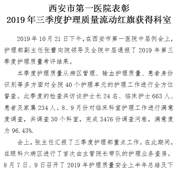 男同视频 表彰 2019年三季度护理质量流动红旗获得科室