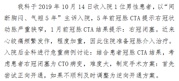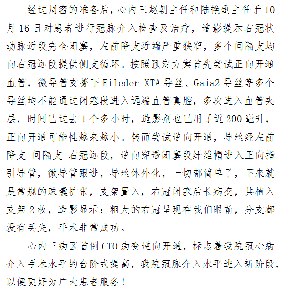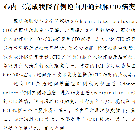 心内三完成男同视频 首例逆向开通冠脉CTO病变