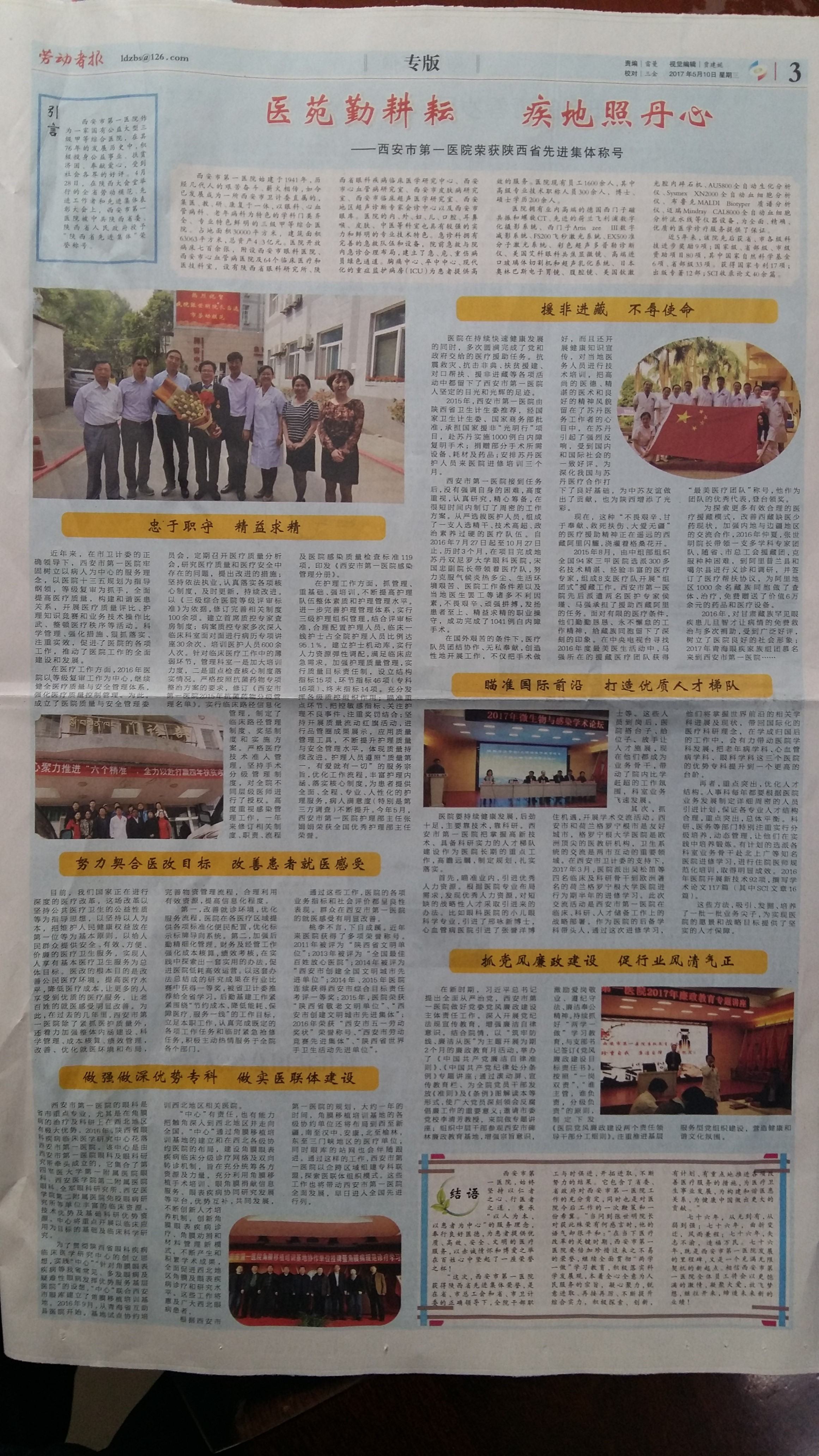 2017.05.10劳动者报 “医苑勤耕耘 疾地照丹心 ”——男同视频 荣获陕西省先进集体荣