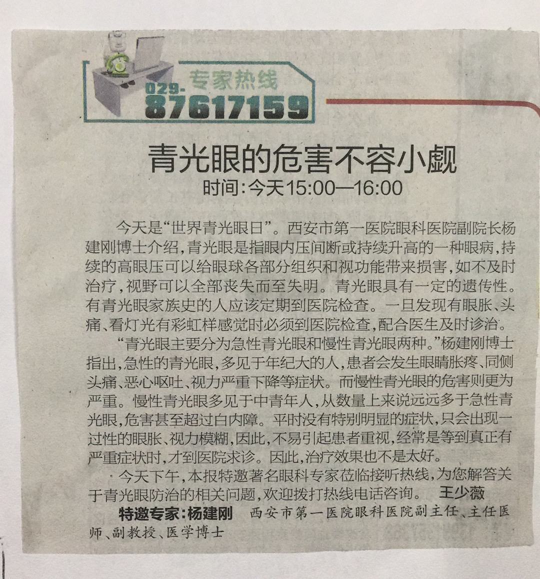 2018.3.6《西安晚报》青光眼的危害不容小觑