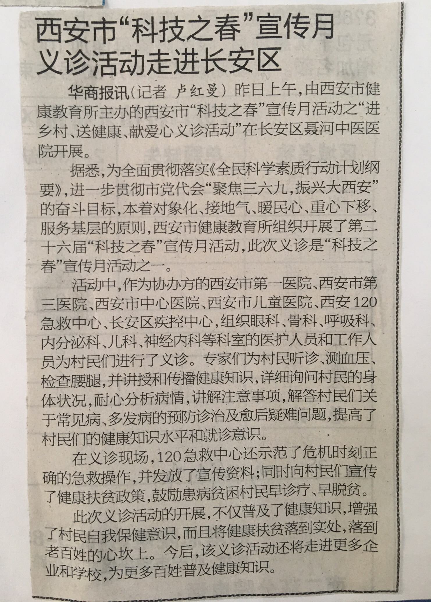 2018.4.27 《华商报》西安市“科技之春”宣传月义诊活动走进长安区