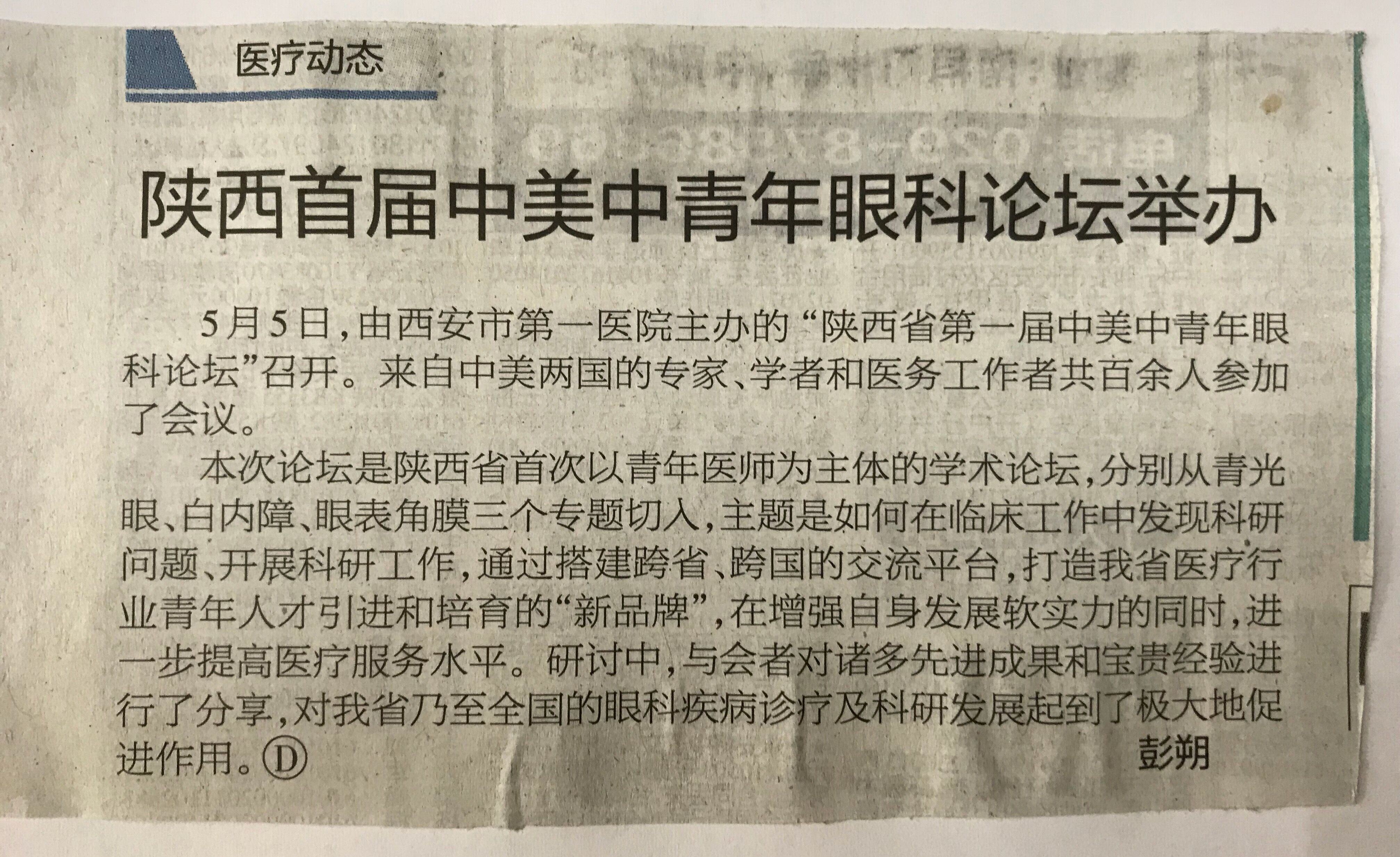 2018.5.8《西安晚报》陕西首届中美中青年眼科论坛举办