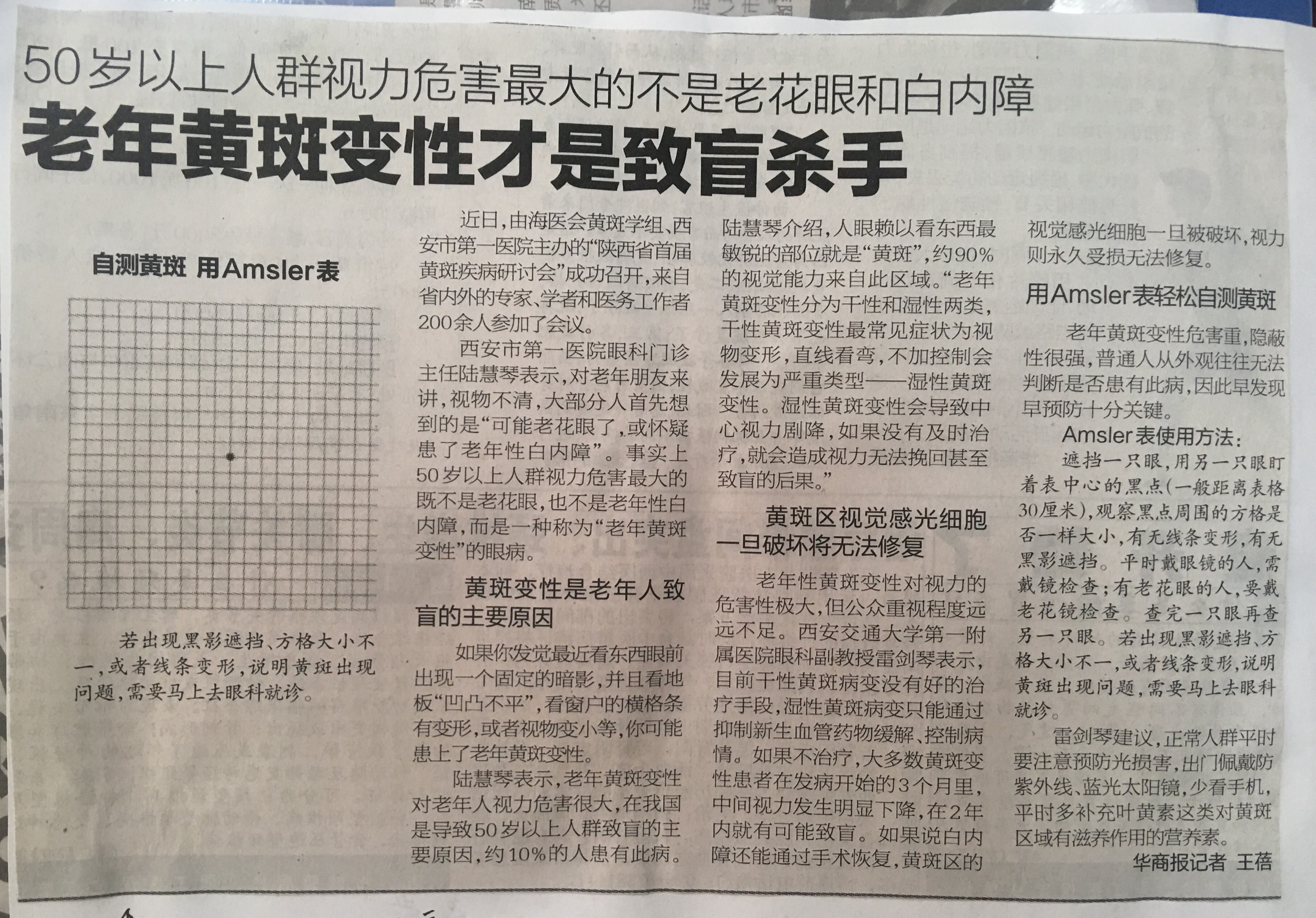 2018.5.16《华商报》老年黄斑变性才是致盲杀手