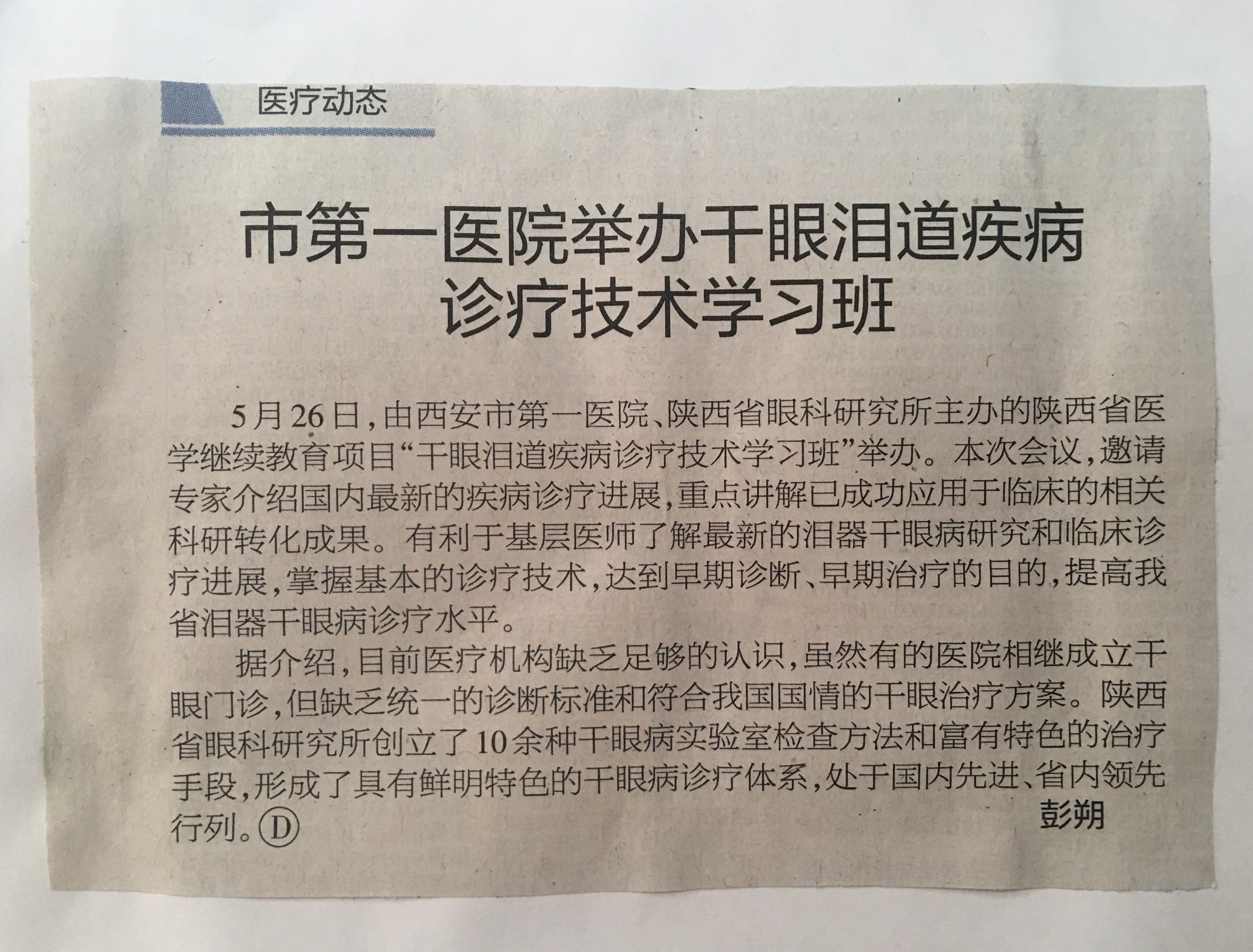 2018.5.29《西安晚报》市第一医院举办干眼泪道疾病诊疗技术学习班(16版)