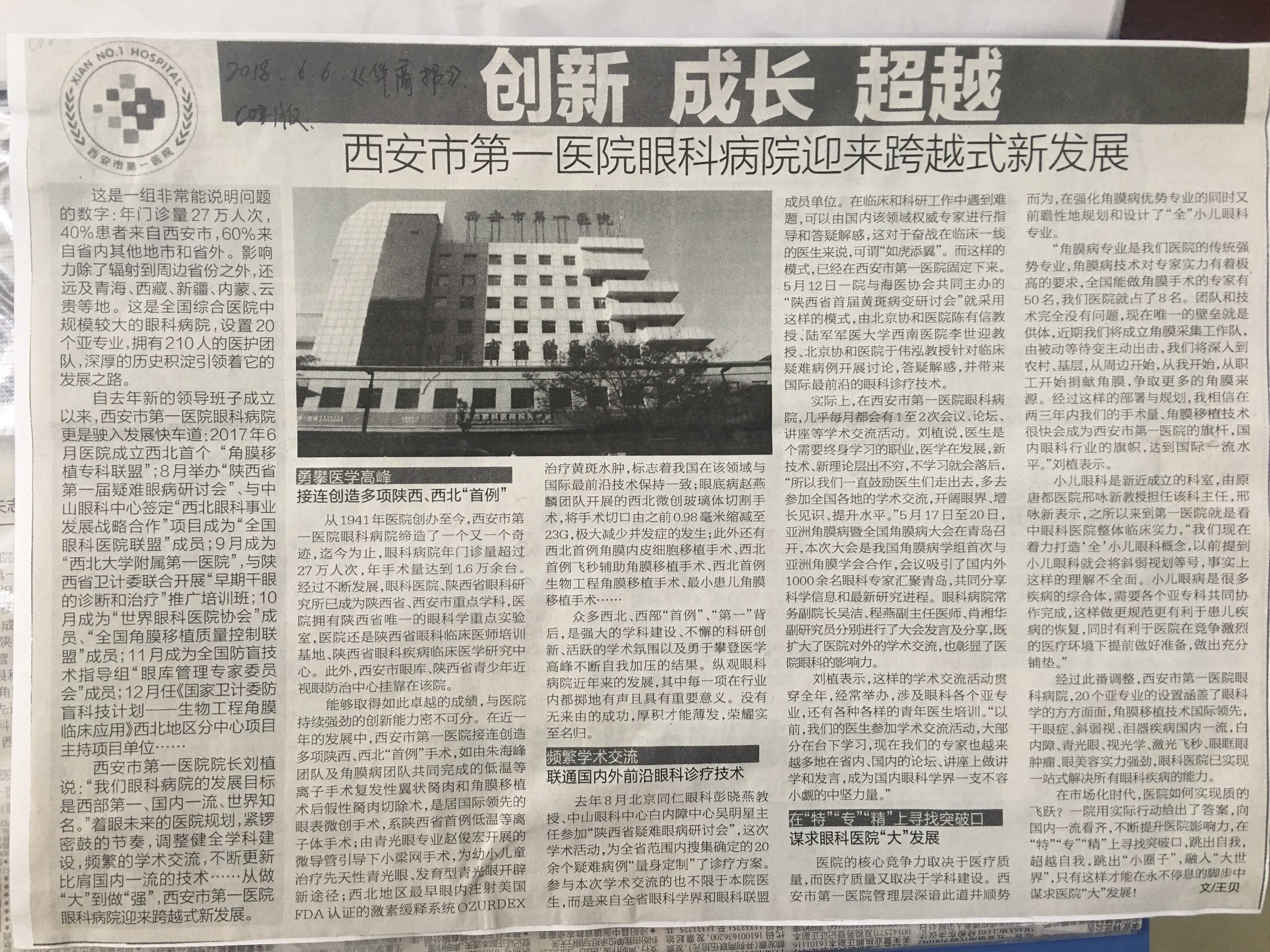 2018.6.6《华商报》男同视频 眼科病院迎来跨越式新发展