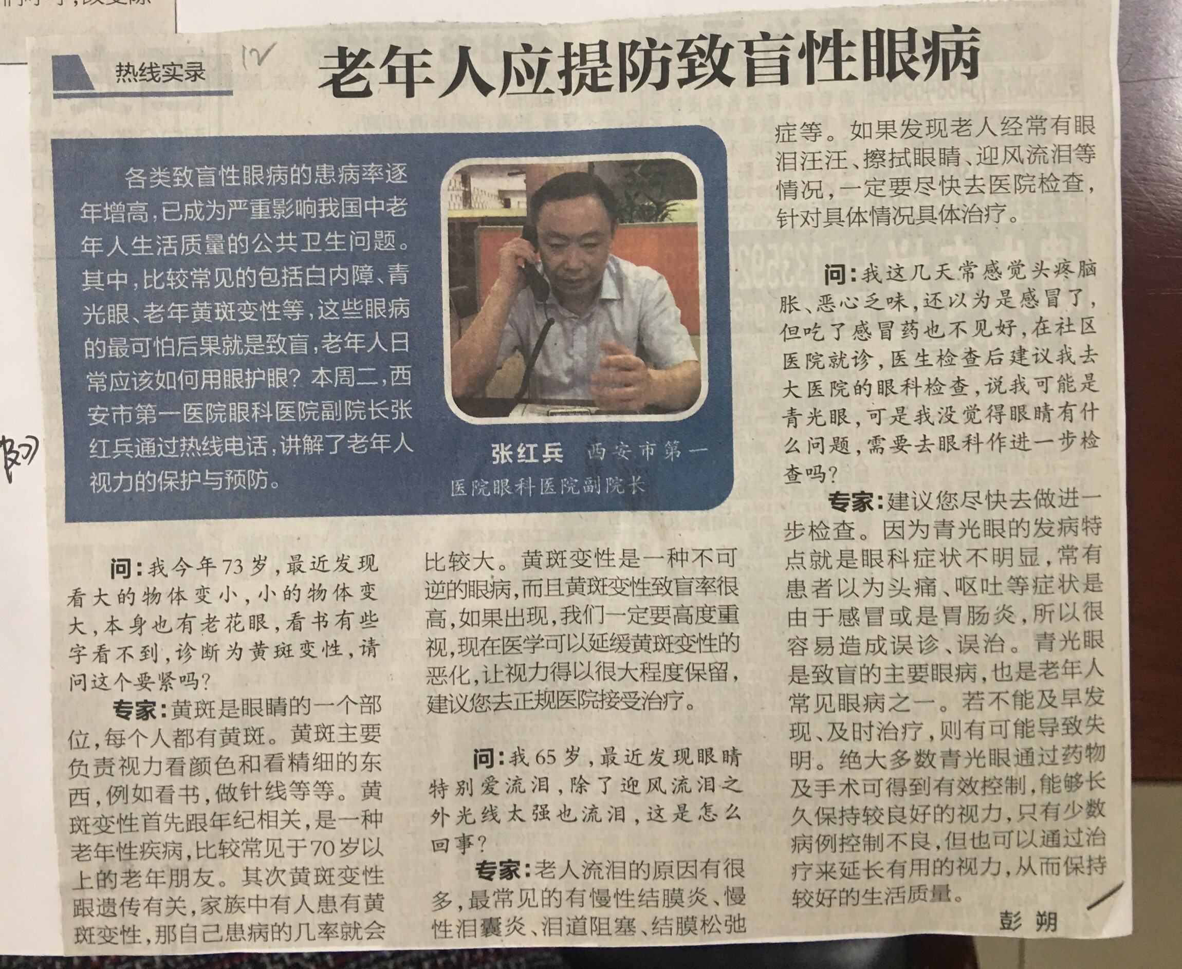 2018.6.7《西安晚报》老年人应提防致盲性眼病