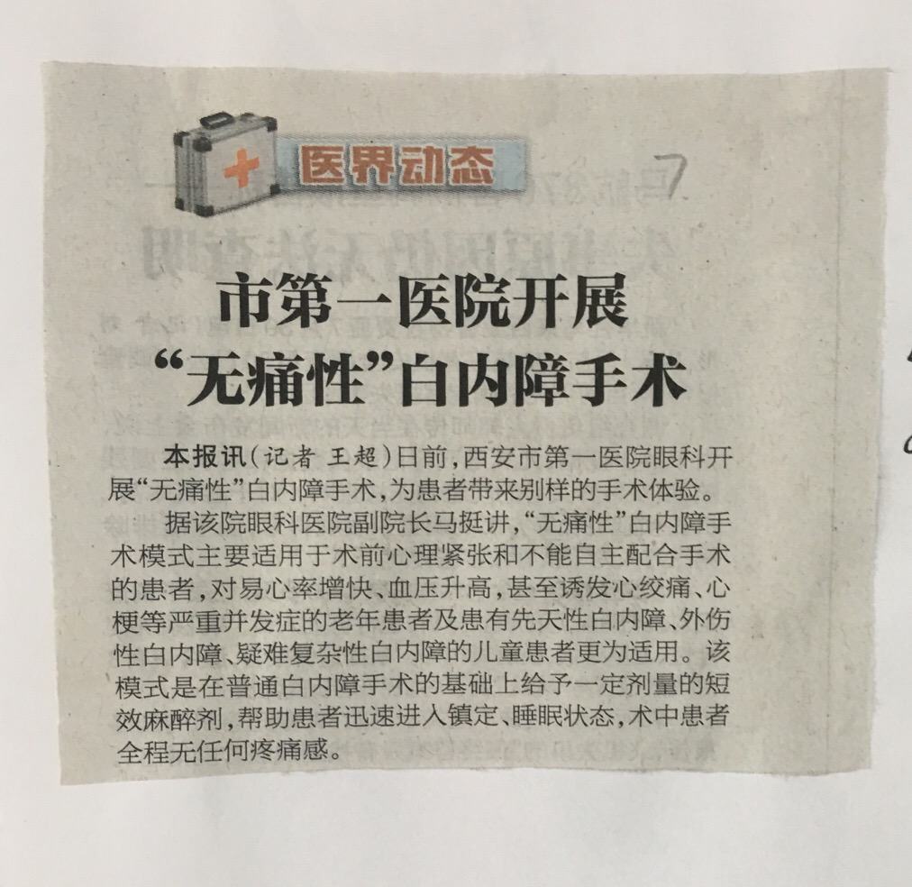 2018.7.31《西安晚报》市一院开展“无痛性”白内障手术