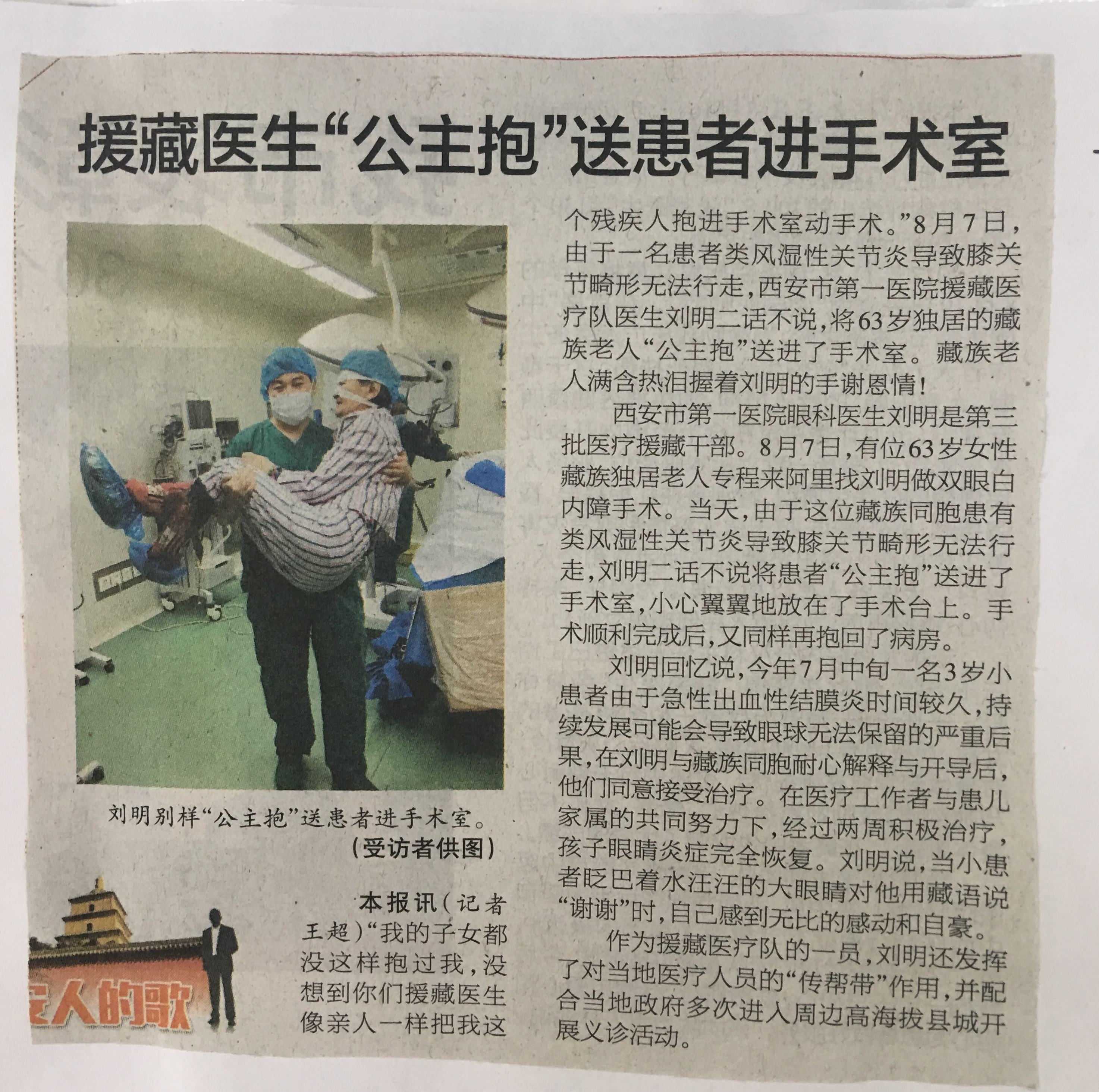2018.8.17《西安晚报》援藏医生“公主抱”送患者进手术室