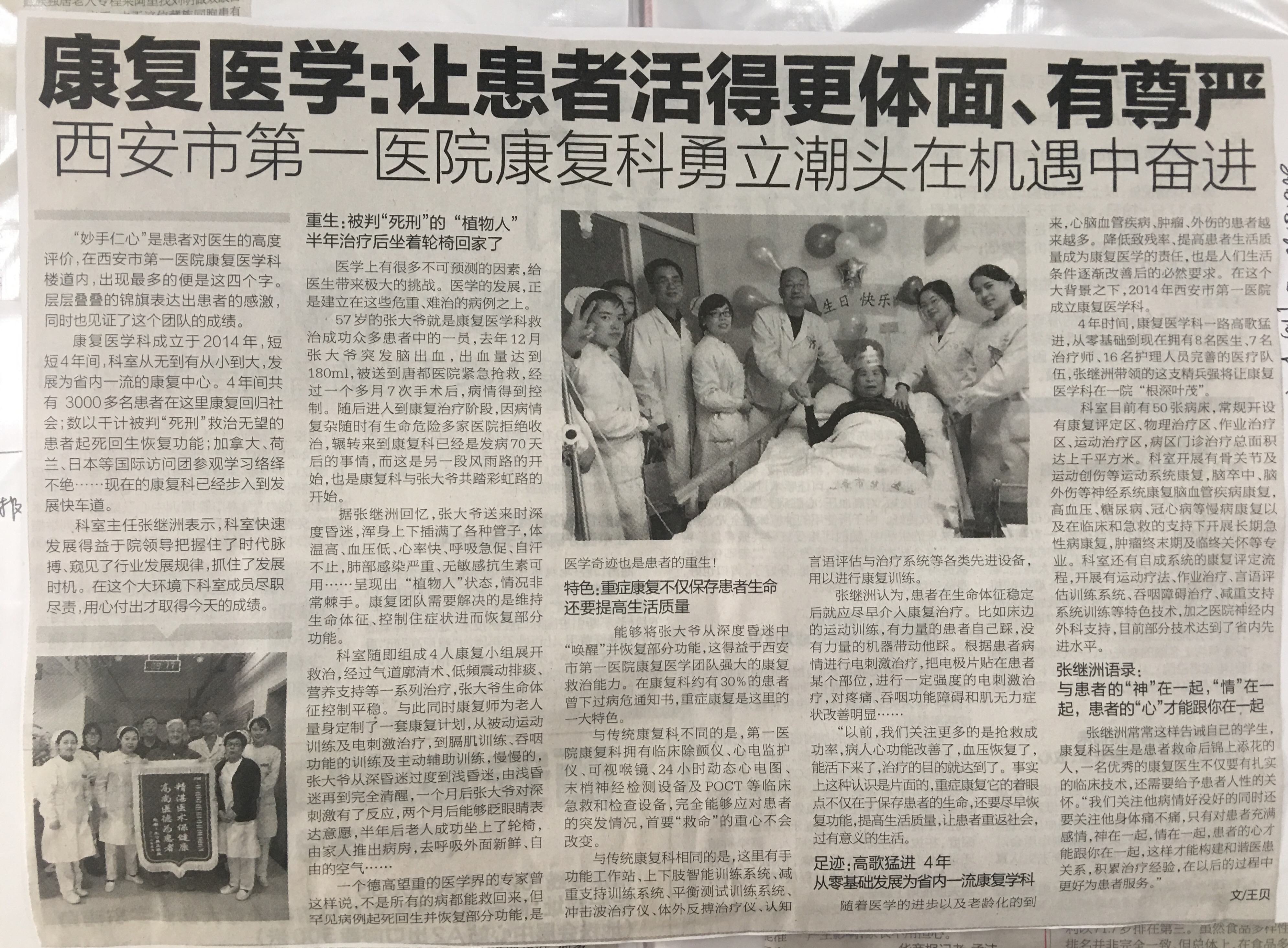 2018.8.20《华商报》男同视频 康复科勇立潮头在机遇中奋进