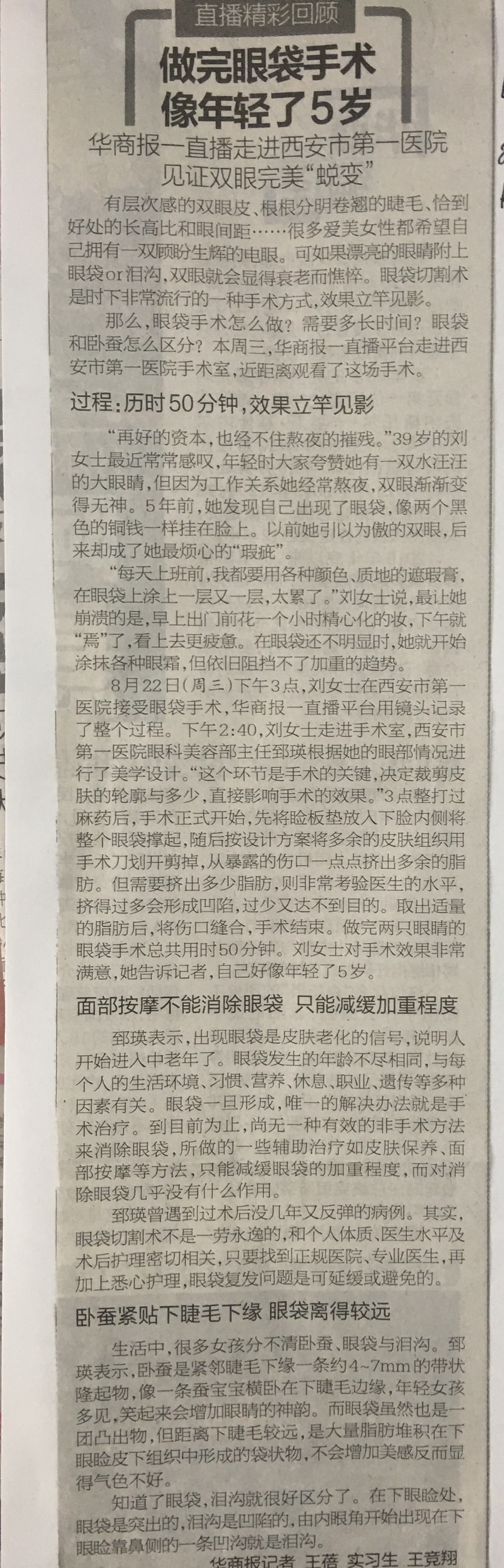 2018.8.25《华商报》做完眼袋手术像年轻了5岁