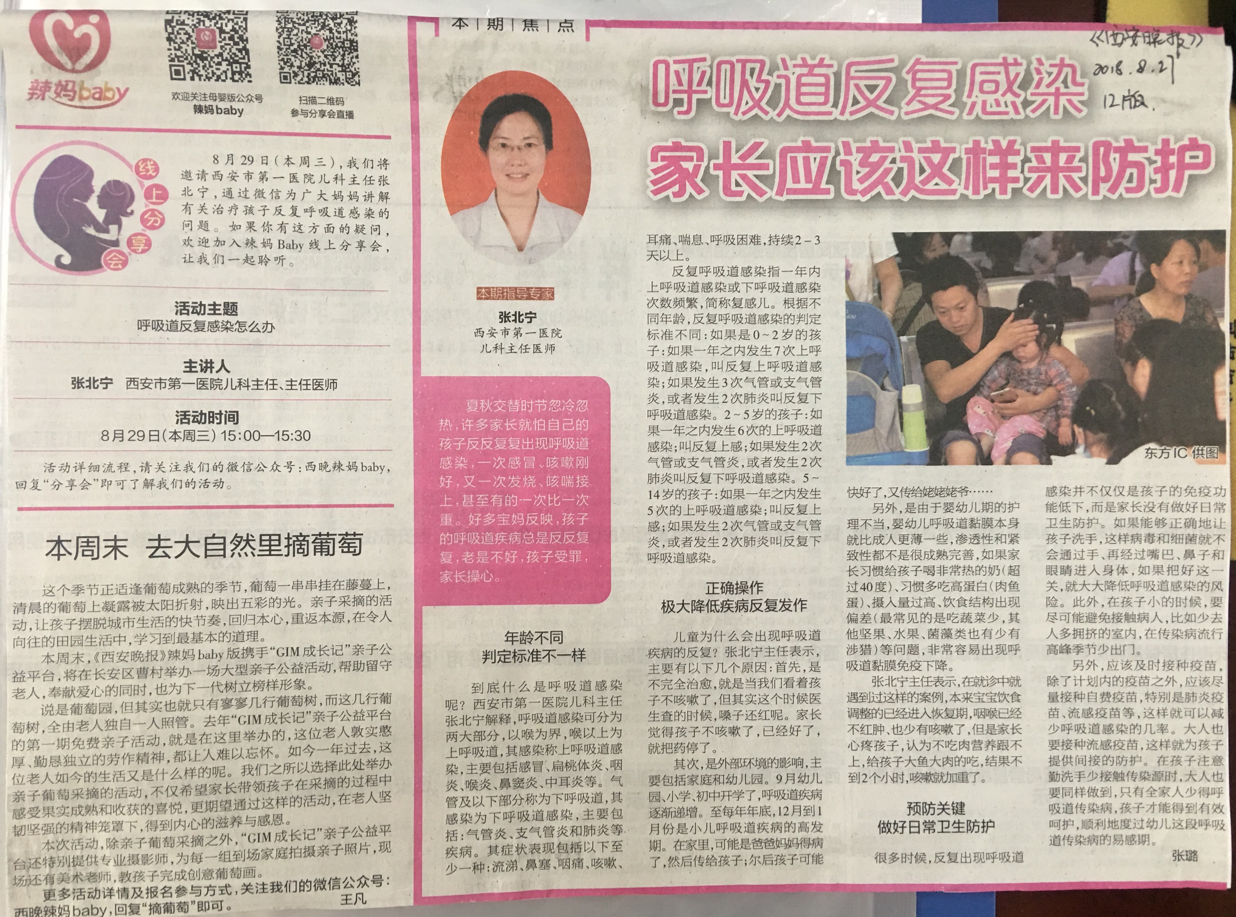2018.8.27《西安晚报》呼吸道反复感染家长应该这样来防护