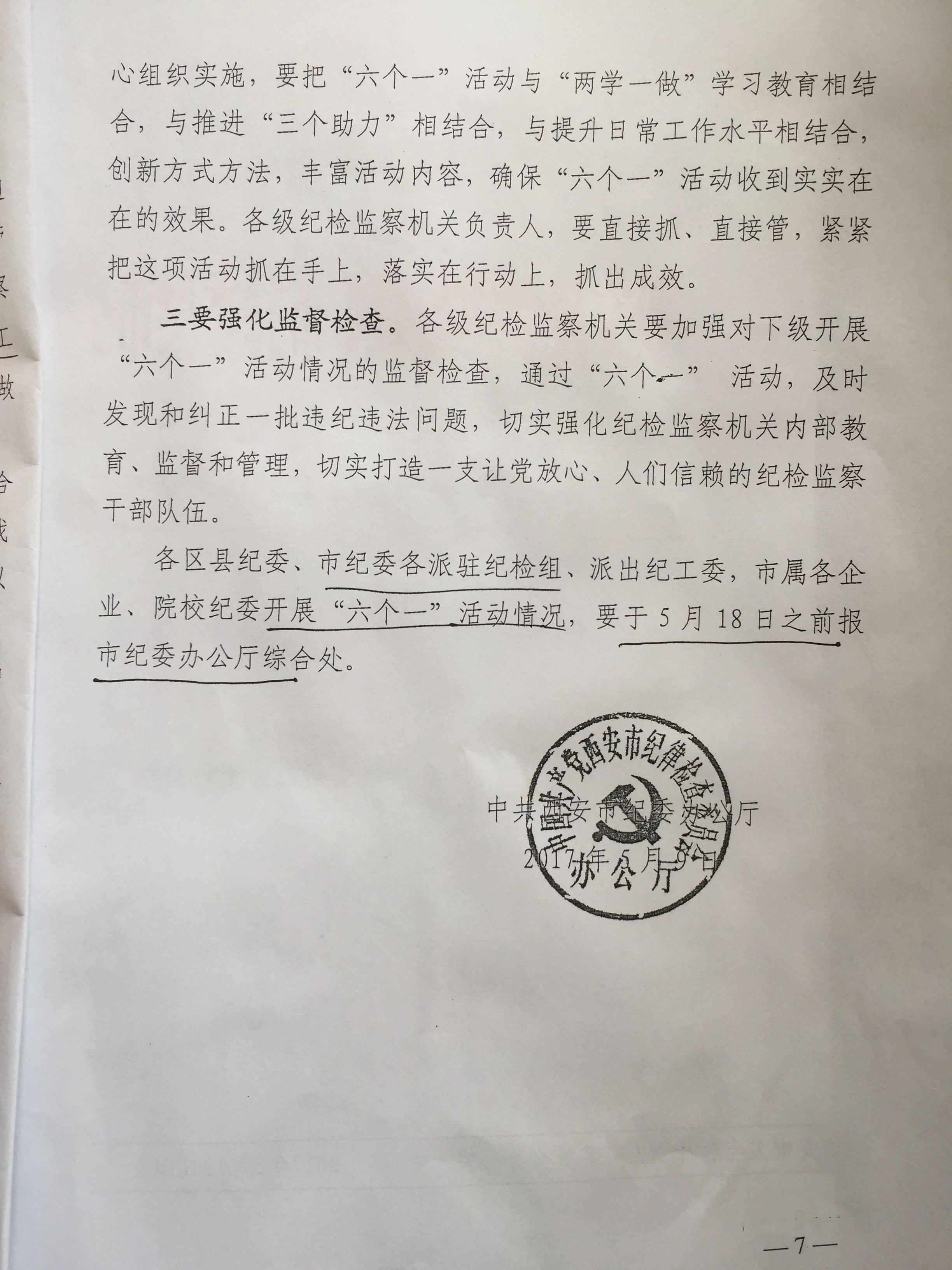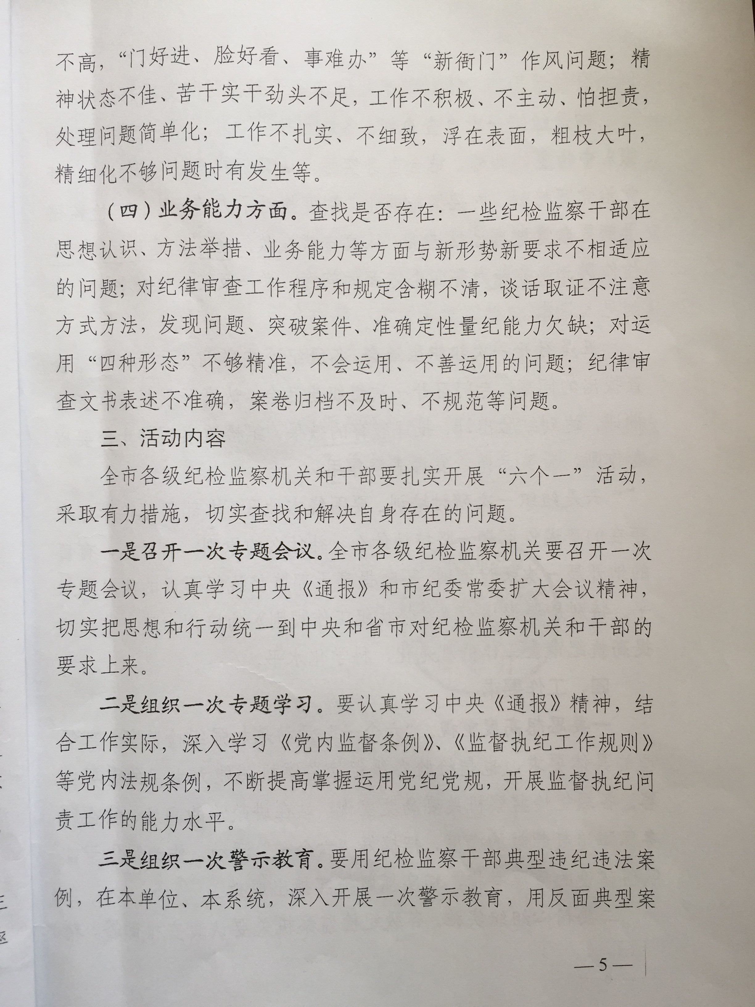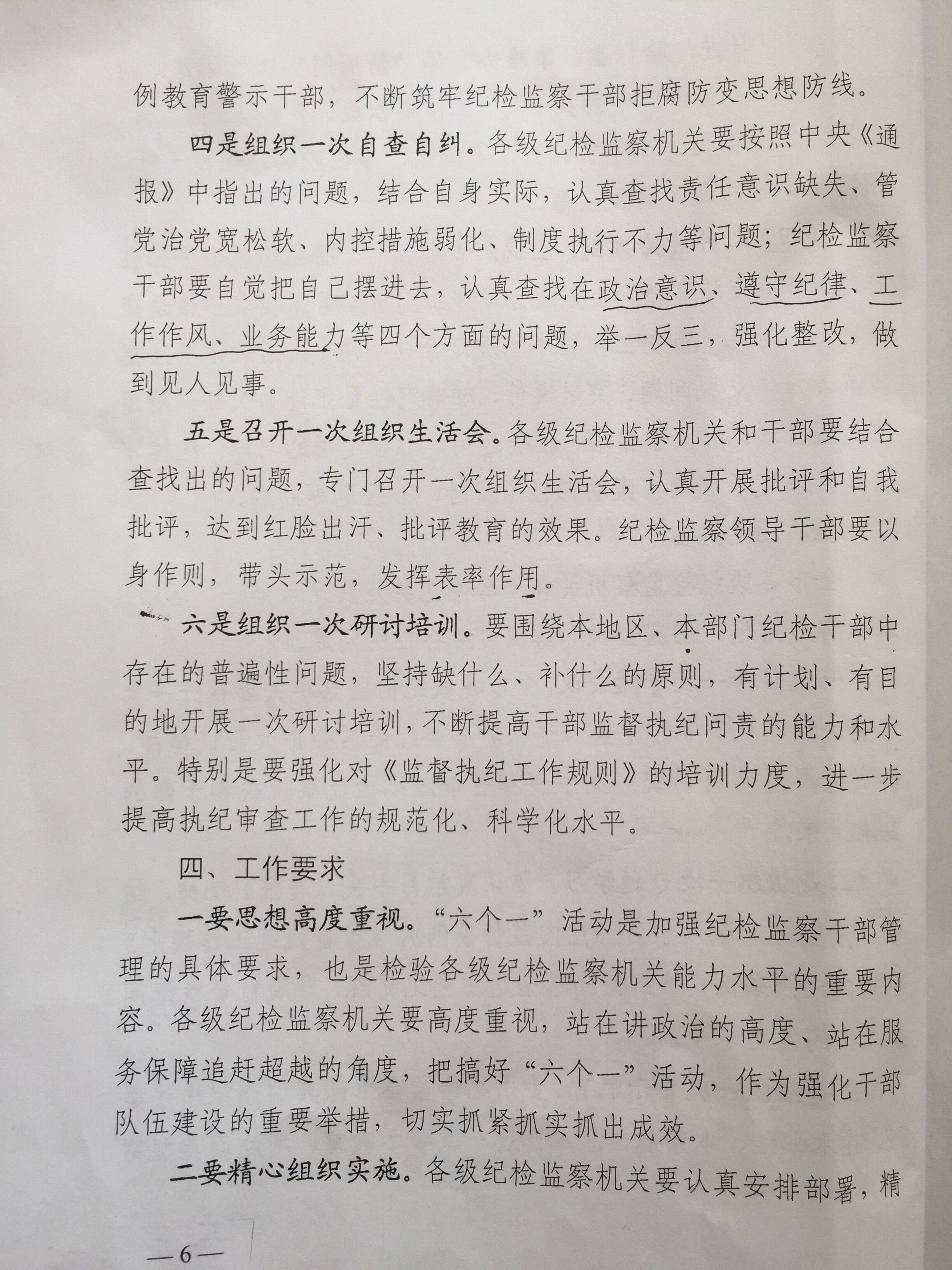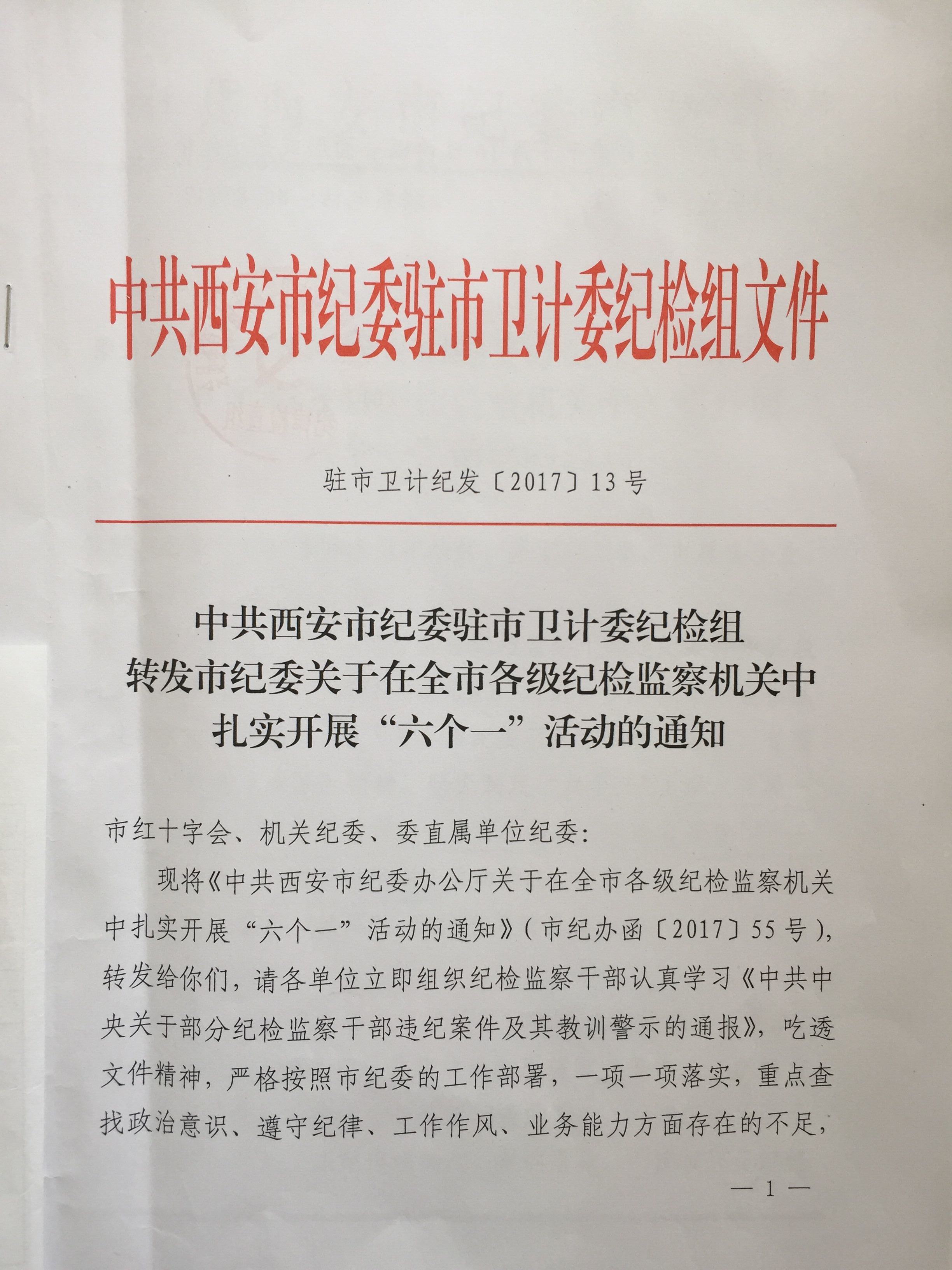 驻市卫计委纪检组转发市纪委关于在全市各级纪检监察机关中扎实开展“六个一”活动通知
