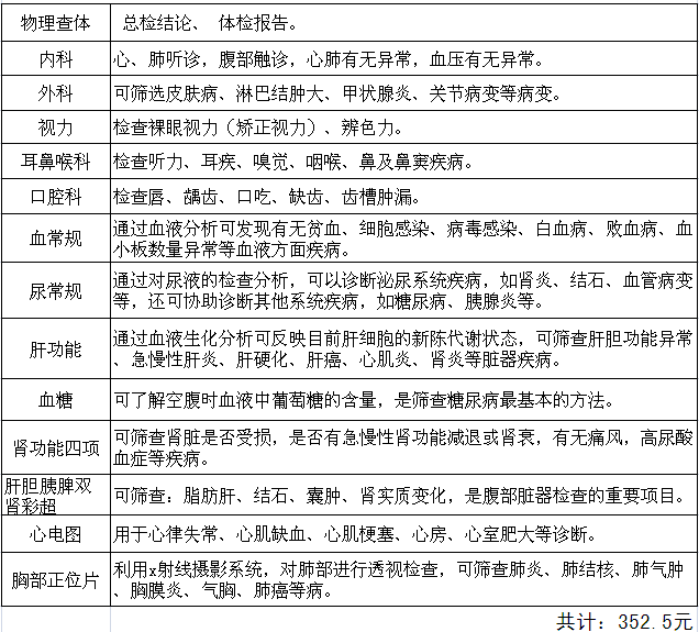 入职体检套餐B