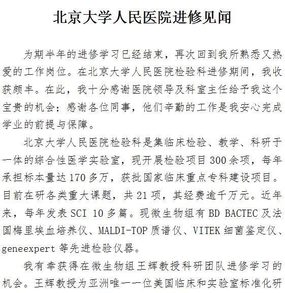北京大学人民医院进修见闻