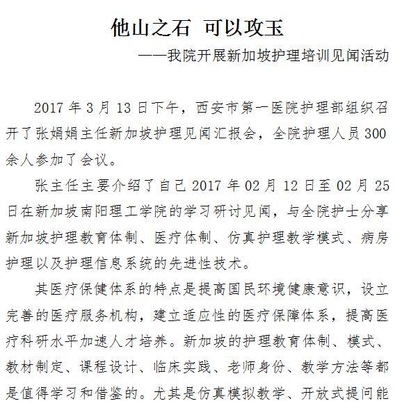 他山之石 可以攻玉 ——男同视频 开展新加坡护理培训见闻活动