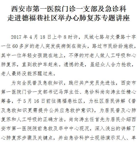 男同视频 门诊一支部及急诊科走进德福巷社区举办心肺复苏专题讲座