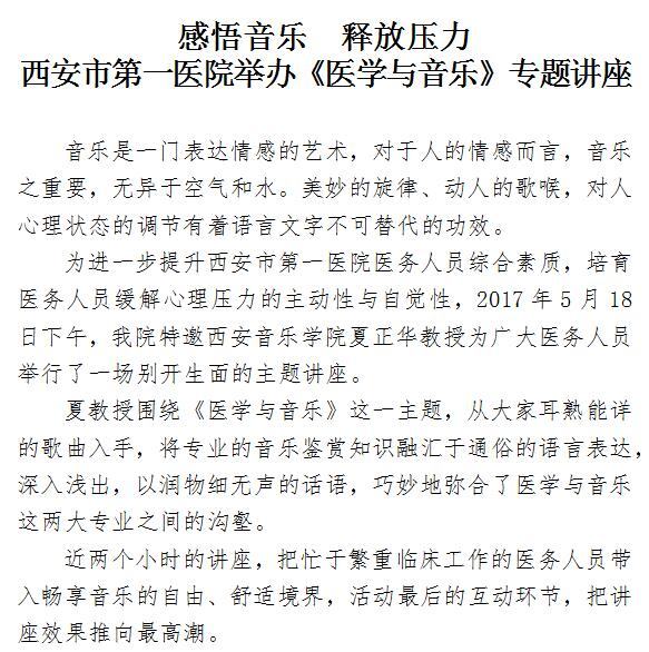 感悟音乐 释放压力 ——男同视频 举办《医学与音乐》专题讲座