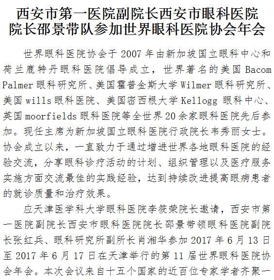 男同视频 副院长西安市眼科医院院长邵景带队参加世界眼科医院协会年会
